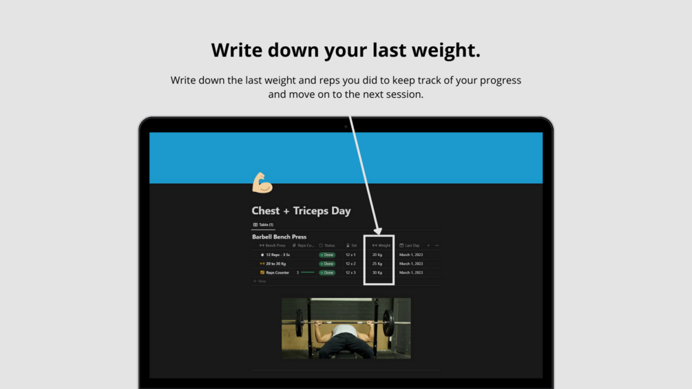 Notion Template Track Gym Progress. Get Full Inmediate Access To: